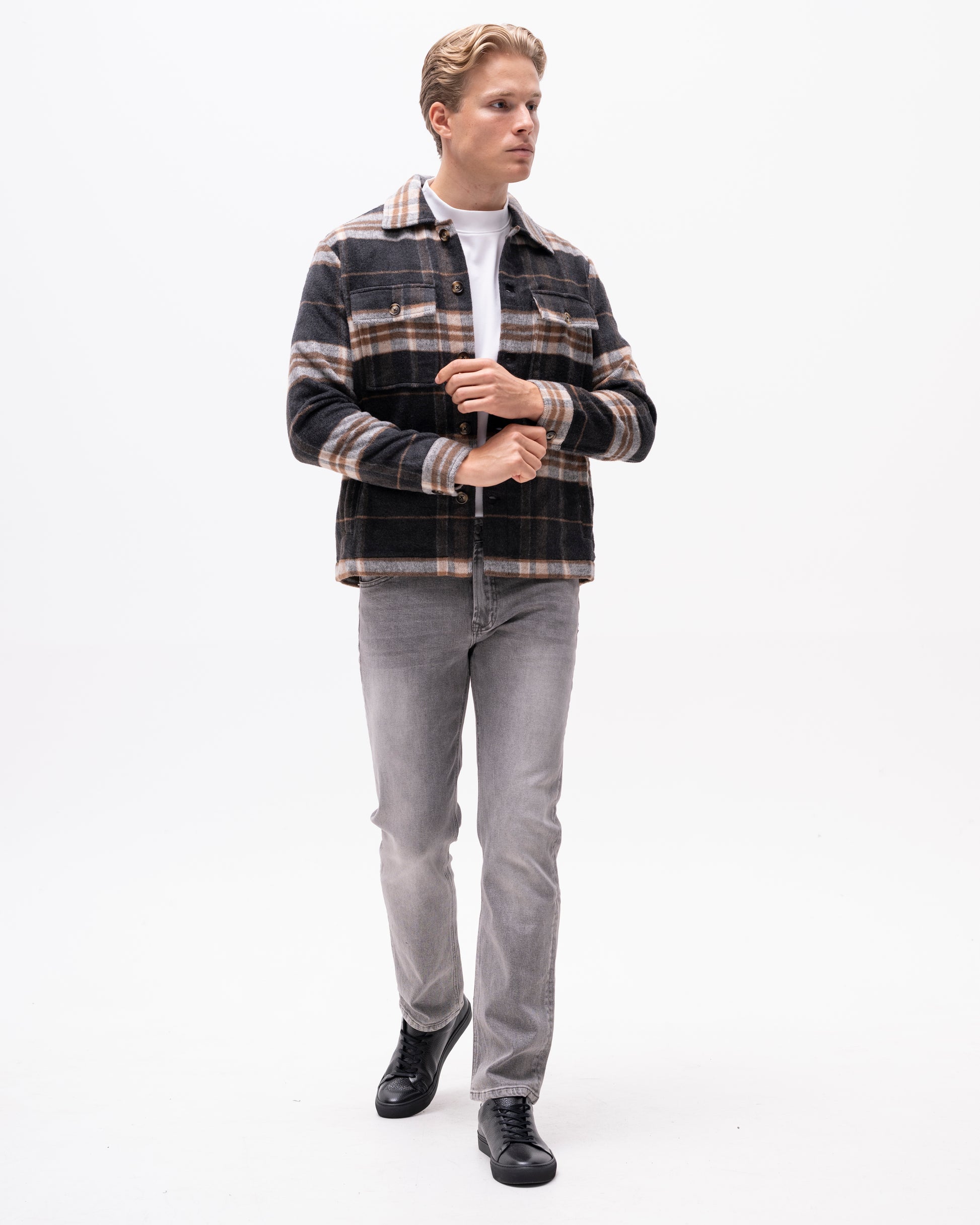 Perfekt som lätt ytterplagg under höst och vår, eller som lager över hoodie eller t-shirt. Den rutiga designen i neutrala toner gör den enkel att matcha.